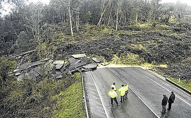 100 metros de calzada quedaron destrozados en febrero como consecuencia del derrumbe de unos 70.000 metros cúbicos de terreno. La carretera se reabrió al tráfico en junio.
