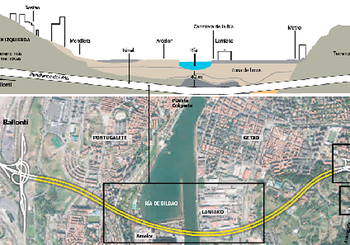 Este planteamiento choca con respecto a lo que la Diputación foral presentó hace tres años. Entonces se habló de la lanzadera de metro como una posibilidad más que factible. Se dijo que el subfluvial incorporaría un transporte público. Se barajó un presupuesto adicional de 185 millones de euros y se presentaron incluso infografías de la posible solución de movilidad. De hecho, el proyecto que se presentó al Banco Europeo de Inversiones (BEI) y que logró 200 millones de financiación incluye ese elemento que aporta sostenibilidad con un medio 'limpio' como el tren.
