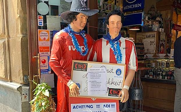Al antiguo delantero centro del Bayern Munich –uno de los mejores de la historia– le llamaban de todo: 'El bombardero de la nación' 'Torpedo Müller'... Se le caían los goles de lo bueno que era. Igual que a nuestro Dani, el legendario '7' de San Mamés. Dos cracks cuyos destinos corren paralelos a la entrada del Restaurante Ein Prosit Bilbao desde que la peña alemana del Athletic les elevó a los altares y convirtió en 'embajadores' animados. «Hicimos los muñecos, por lo menos, hace ya 10 años. Los dos se pasaron por la tasca el día de la inauguración y les hizo mucha gracia. Se montó un revuelo cuando vino Torpedo... ¡Claro, es una estrella del fútbol mundial!», recuerda Alfredo Thate, que saca su lado germano.
