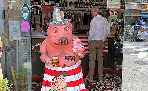 Diez años lleva ya la cerda Marcela en la esquina de Colón de Larreátegui con la plaza del Ensanche. Los que han pasado desde que la familia charcutera más famosa de Bilbao cambió de acera y abandonó, a escasos metros, su legendaria ubicación de Astarloa. Desde el 1 de abril de 2009, concretamente, lleva la sonrosada cerdita animando la vida en esta zona. «Aparte de colgar un viejo cartel, pensé que tenía que poner algo que llamase la atención para que la gente nos tuviera bien ubicados».