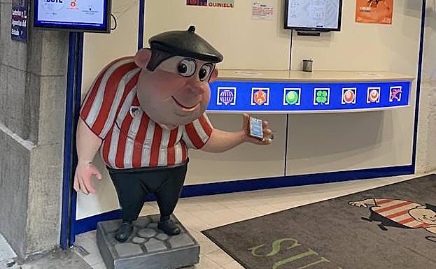 En esta pequeña administración del Casco Viejo la clientela acude en busca de todo tipo de suerte. Muchos conocen a El Jorobao de Bilbao, un entrañable animado, como 'la chapa de la fortuna', pero ignoran de dónde viene el apodo. Lo más auténtico es que fue un personaje de carne y hueso. Lo corrobora Mikel García, el gerente del despacho, que reconoce que la idea salió, como tantas veces, «en una comida». García se ríe, pero confiesa: «A los niños les fascina. Esto es un no parar de hacer fotos, fotos y más fotos. Pero esta es la historia de una persona que había por el Casco Viejo que tenía chepa y que la gente le frotaba las cosas en la espalda para ver si les traía suerte».
