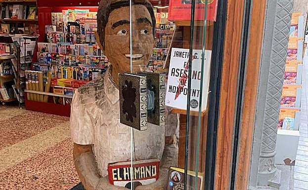 El Humano, de metro y medio de altura, es cabeza y tronco. Aparece sin piernas, sostiene en sus manos 'El Humano' y estos días aparece pegado a la cristalera junto a 'El asesino de Noxpoint', de Janeth G. S. Sobran las palabras, pero, pese a su aspecto, Javier Cámara, propietario de una librería recién galardonada por cumplir 93 años de historia, dice que encandila a niños y perros. Mejor no preguntar el porqué.