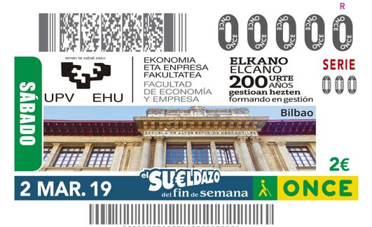 Loterías y Apuestas del Estado ha emitido 10 millones de décimos para el sorteo de lotería nacional de este sábado, 31 de agosto, con la imagen de la Escuela de Comercio de la Facultad de Economía y Empresa de la UPV/EHU, con motivo del bicentenario del edificio de la calle Elcano de Bilbao, una de las primeras escuelas del mundo dedicada a las enseñanzas mercantiles.