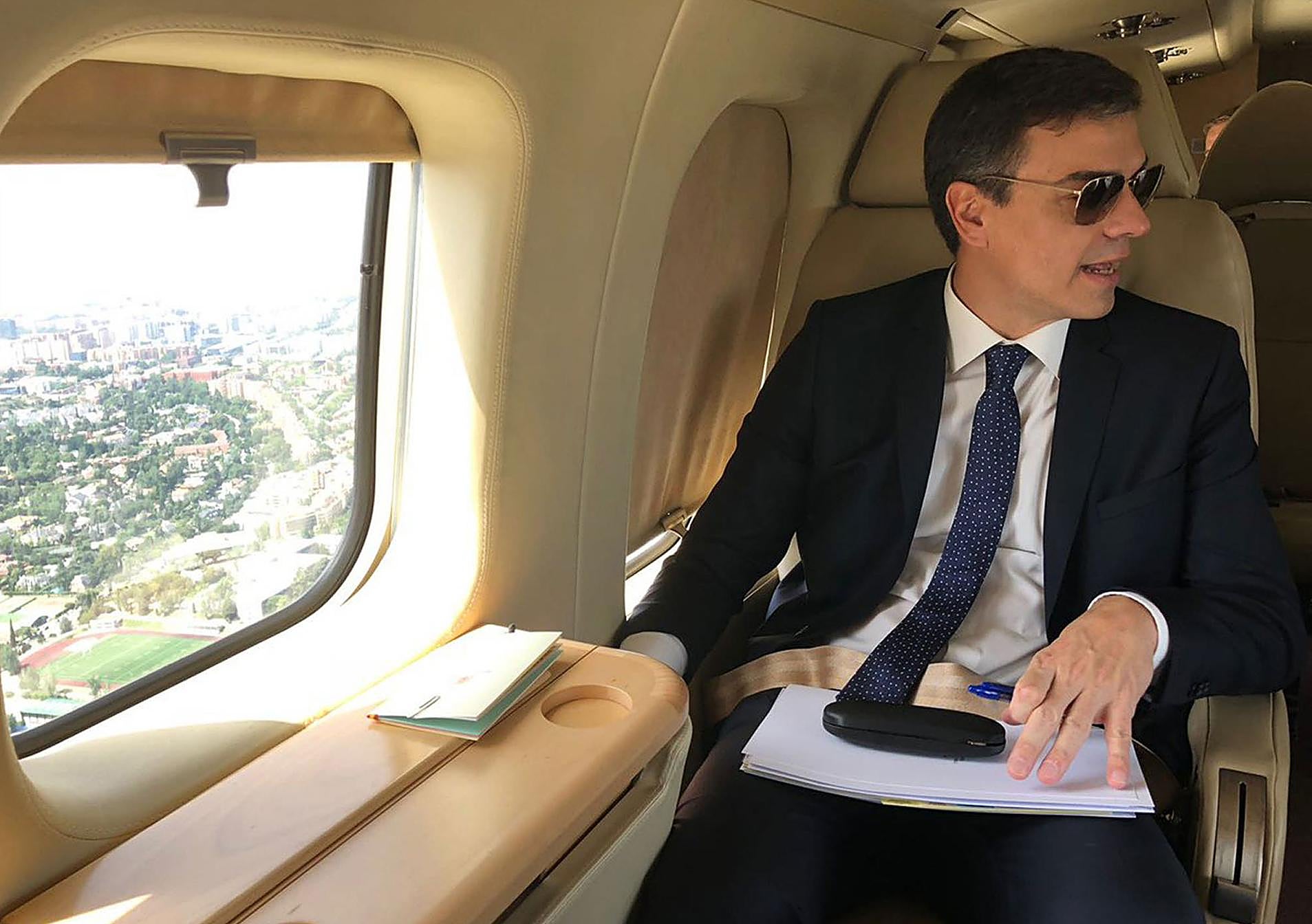 La foto que hizo famoso al Falcon es de junio de 2018, cuando Pedro Sánchez llevaba unas semanas como presidente del Gobierno. El líder socialista aparecía rodeado de papeles y lucía unas gafas Ray-Ban Caravan, típicas de aviador. Una imagen muy al estilo de presidente norteamericano, sentado en una de las butacas de cuero deuno de los cinco Falcon Dassault 900 que compraron entre Felipe González y José María Aznar durante sus respectivas presidencias. Las crítica no tardaron en llegar.