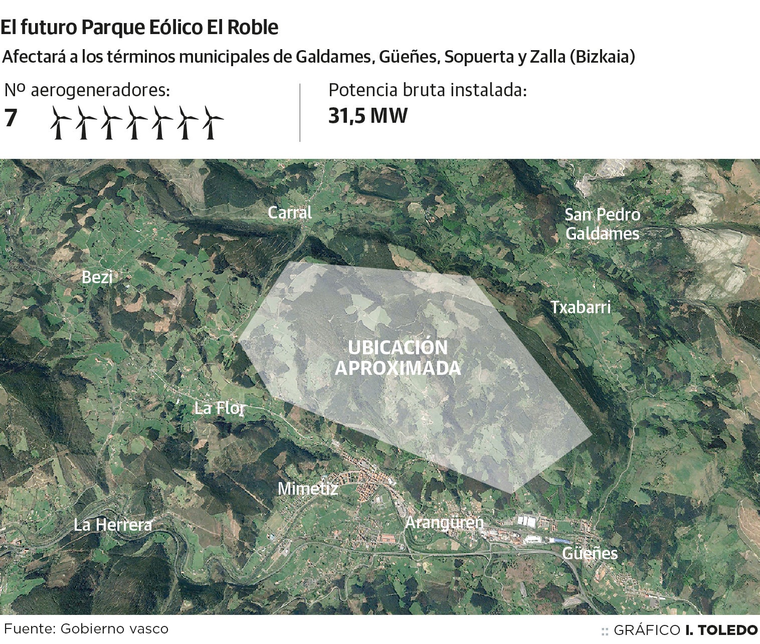 La zona elegida ahora para el parque eólico El Roble coincide con uno de los emplazamientos que el Plan Territorial Sectorial de las Energías Renovables (PTS) de Euskadi identifica como de segundo orden. En concreto, el documento estipula que este paraje tiene potencial para su desarrollo eólico y cuenta con un mínimo de 2.650 horas de viento al año. En septiembre pasado, el lehendakari, Iñigo Urkullu, reconoció que «no es agradable» tener un molino en el monte «al lado de tu casa», pero defendió este tipo de proyectos porque la lucha contra el cambio climático constituye «una prioridad». «Y lo vamos a hacer», avisó.