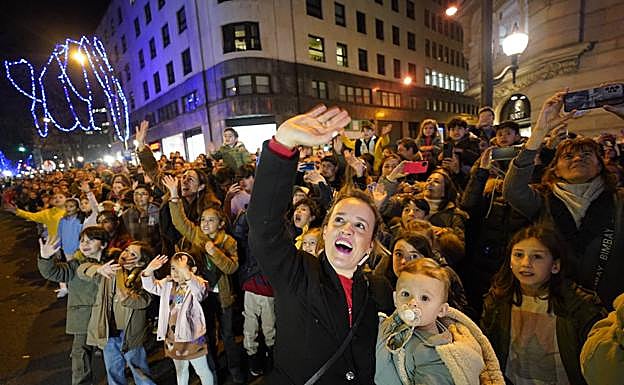 Cualquiera diría que, con los dos años en blanco de la pandemia, el público de la cabalgata de Bilbao se ha triplicado: la Gran Vía se ha abarrotado de una muchedumbre ansiosa de magia, regalos y caramelos, que son tres cosas que se echan mucho de menos cuando faltan. Había tramos de calle en los que quedaba el espacio justo para que pasase el desfile, tan cerca de la primera fila que algunos críos pillines amagaban con mangarles a los Reyes los paquetes de pega que transportaban en las carrozas. Y los carteros reales, a pesar de andar sobre zancos e ir provistos de una especie de cazamariposas, casi no alcanzaban a recoger las misivas de los de más atrás, allá lejos, en la acera. «¡Ya teníamos ganas, qué ilusión!», han dicho al final los tres protagonistas desde el balcón del Ayuntamiento, entre repetidos deseos de paz. Un frenesí similar se ha vivido en otras localidades vizcaínas.
