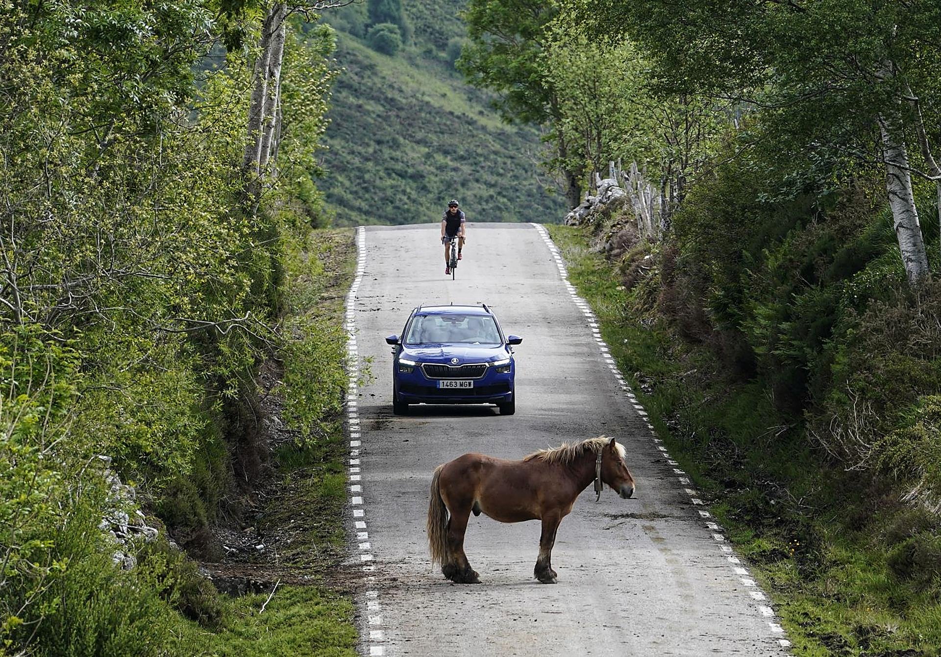 En el debate sobre los quitamiedos –que en Lunada, con el despeñadero como acompañante en todo el camino, deberían ser continuos–, siempre suele aparecer el argumento de que estas carreteras de montaña están muy poco transitadas, pero eso cada día es menos verdad. Es cierto que, en una hora de una mañana de jueves, y esto es una contabilidad real, pasan por Estacas seis vehículos: dos motocicletas de la Guardia Civil, otra de un excursionista extranjero, una bicicleta, una furgoneta con aspecto de pertenecer a algún ganadero de la zona y un precioso 600 azul de paseo por la montaña. Pero ese magro recuento ya da una idea de que se trata de rutas muy usadas para el ocio. «Cada vez viene más gente a las cabañas. Y en invierno se presenta aquí todo Bilbao a esquiar, o con plásticos, porque la estación de Lunada está cerrada pero siguen viniendo», apunta Ortiz. Hay, además, una base militar, la del Escuadrón de Vigilancia Aérea número 12, y los fines de semana esto es un hervidero de ciclistas y de moteros, muchos de ellos extranjeros llegados en ferry con hambre de curvas. Este lugar puede parecer remoto, pero aquí te puedes topar con el mundo entero: en Lunada ha hecho un alto un ciclista polaco, Aleksander Wilkans, que recorre la ruta Valencia-Santander. «He subido desde Espinosa, así que todavía no he bajado y no conozco esa parte. Sí he visto algunos puntos que necesitan barreras, pero entiendo el conflicto entre la seguridad, el presupuesto y la belleza del paisaje», plantea.