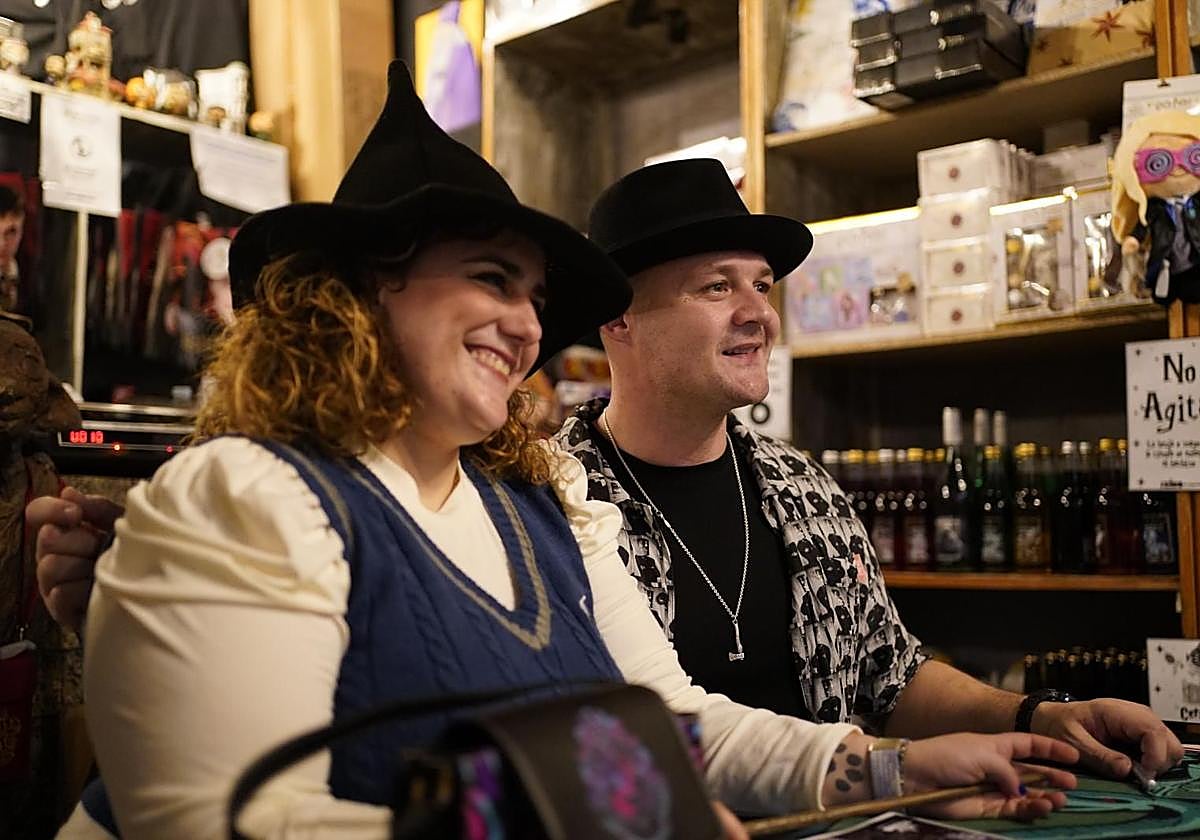 Decenas de fans de la saga han acudido a esta tienda del número 41 de la calle Artekale. Organizado por la empresa 'Reino de juguetes', el público tenía que adquirir entradas para distintas sesiones y horas. La entrada de 25 euros incluye una foto y una firma con el actor por persona y entrada. Su versión VIP, por 45 euros barba, contempla además una lámina exclusiva y una charla con el artista, comentando curiosidades sobre el rodaje y este mundo mágico que tanto disfrutan los 'Potterhead'. «Tuve que ver diez veces la primera película de la saga para poder interpretar los gestos de Harry Potter en el momento en que se tomaba la poción multijugos», respondió a una fan del pase de la tarde. La joven traía una serie de preguntas sobre la saga apuntadas en un papel.