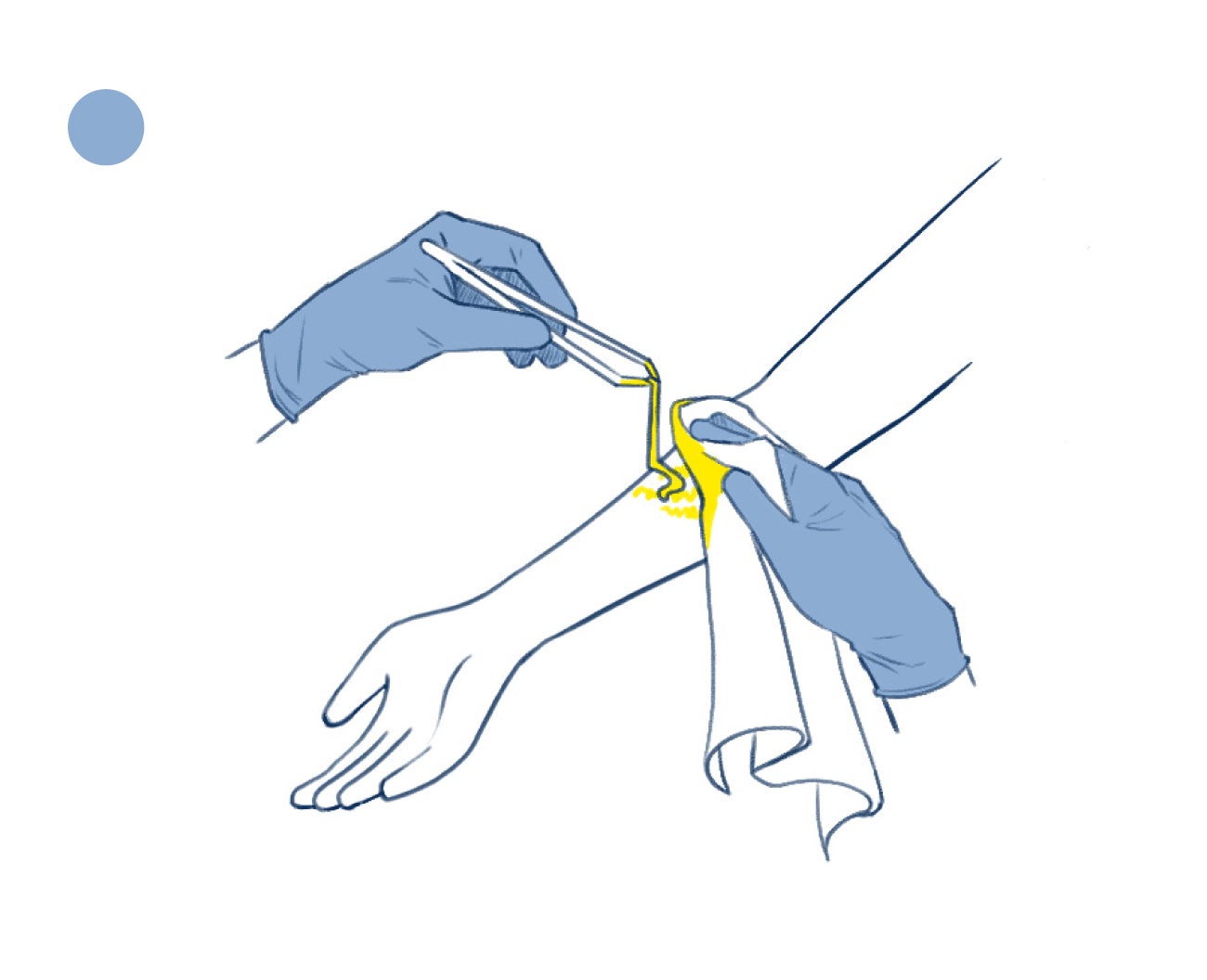 «Hay que retirar los tentáculos que hayan podido quedar incrustados o pegados a la piel. Hacerlo con pinzas y guantes es la opción más higiénica, pero lo más probable es que no se tenga ese material a mano, así que también se puede utilizar alguna prenda de vestir como una camiseta o toalla limpia». Es importante no hacerlo con las manos para no extender la picadura.