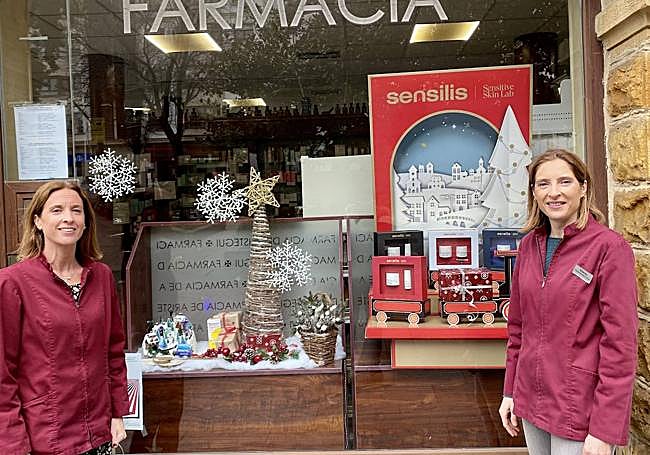 Elena e Isabel Aristegui fueron de las pocas que no pudieron acudir a recibir el martes el premio que Getxo Enpresa les otorgó por su decoración, que es ni más ni menos que el escaparate que mejor atrae y conecta con los clientes. Las hermanas, que trabajan en el negocio familiar que cumplirá en 2025 los cien años, aseguran que intentaron «unir la decoración navideña con productos farmacéuticos típicos de la época, como el almax, las juanolas o los antitusivos». Además de impulsar la imagen física, también trabajan activamente en instagram para acercar el negocio a los más jóvenes.