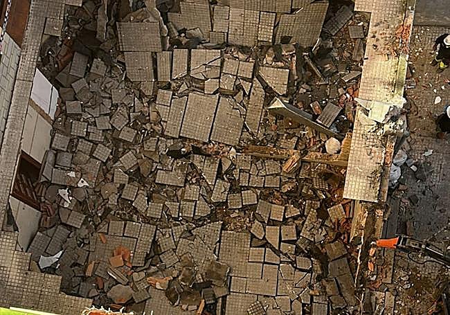 «Percibimos que el patio se estaba hundiendo, porque había llovido y se formó un charco, lo que nos alertó. Llamamos a los bomberos y nos confirmaron que había un riesgo de colapso», relató ayer a EL CORREO Sara Pérez, una de las vecinas afectadas del portal 6. La residente explica que «en la lonja llevaban dos semanas de obras, el otro día daban unos martillazos que retumbaba el edificio, ahora entendemos por qué, han quitado un pilar importante». Ante los hechos, «nos confinaron a todos en casa por seguridad y, después de analizar durante horas la situación, decidieron que no podían entrar a apuntalar porque se ponían en riesgo ellos mismos. Estaba en demasiado mal estado como para entrar a llevar a cabo esa tarea», contó.