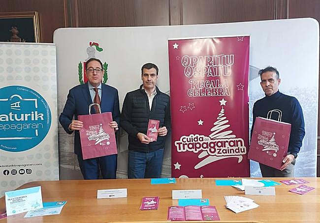 De la misma forma, quienes adquieran productos en la localidad mediante la tarjeta Visa Baturik Trapagaran entrarán en el sorteo de 24 cestas navideñas valoradas en más de 60 euros. Además, se distribuirán bolsas entre los comercios y servilletas entre la hostelería con el lema de la campaña. «Está en nuestras manos celebrar, regalar y cuidar de Trapagaran», apunta Iñaki Sasiain, presidente de Baturik. La presentación de la campaña ha contado con la presencia del viceconsejero de Comercio y Turismo, Jesús María García de Cos, quien resalta la apuesta por el comercio local. «Iniciativas como esta son más necesarias que nunca».