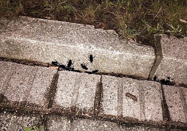 Por la acera, por el césped, por las escaleras, por el parque infantil... Basta solo con pasear unos metros por la barriada de Corazón de ... María, en Cruces, y por las arterias aledañas de Albéniz y Magallanes, junto al colegio Salesianos, para toparse con infinidad de cucarachas en el suelo. Una plaga que trae de cabeza a los residentes de esta zona de Barakaldo, que han visto cómo incluso estos insectos se han llegado a colar en sus propias casas.