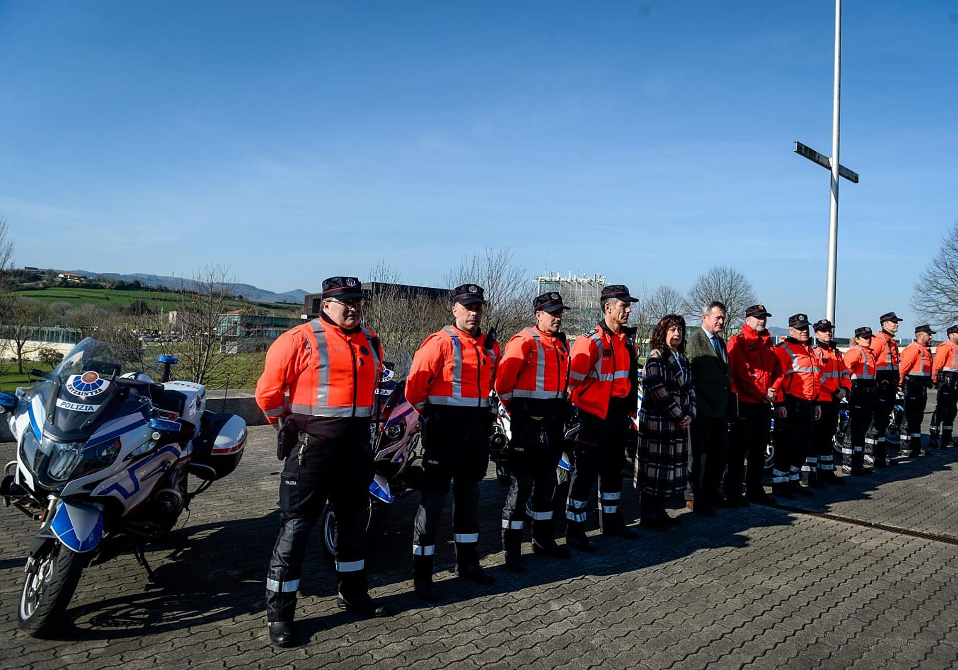 La Unidad de Tráfico de la Ertzaintza ostenta el triste récord de agentes fallecidos y heridos de gravedad en acto de servicio, por encima de ... otras especialidades que, en principio, se enfrentan a peligros más evidentes, como la de explosivos o intervención. Los más de 200 motoristas con que cuentan las tres secciones territoriales en Bizkaia, Álava y Gipuzkoa van a estrenar nuevo uniforme y un chaleco-airbag «para reducir los riesgos de la carretera y garantizar su seguridad y la de los ciudadanos», según explicó ayer el consejero de Seguridad, Bingen Zupiria, durante la presentación en la macrocomisaría de Erandio, a la que han asistido tanto el jefe de la Ertzaintza, Josu Bujanda, como la directora, Victoria Landa, los tres nagusis de cada territorio y una representación de los agentes de Tráfico, entre ellos una mujer.