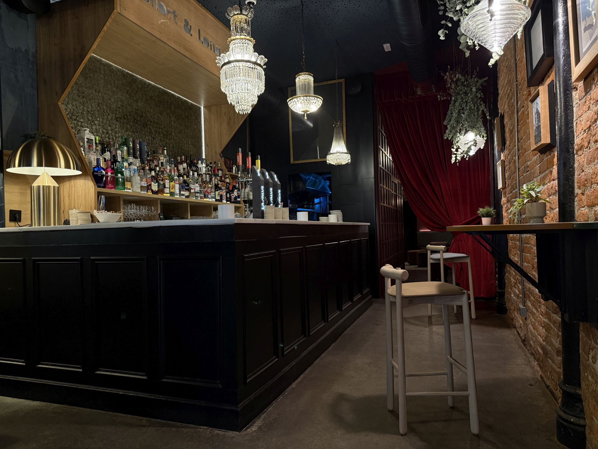 Sin embargo, por la tarde ampliará el arco para quienes se decantan por un picoteo y desean tomar una buena copa o un cóctel. «Ahora, de momento, tenemos un picoteo para que la gente que esté bebiendo tenga algo para picar. Pero luego llegarán las croquetas, los tartares, tablas de ibéricos…». Un nuevo cambio de rumbo y concepto que busca conectar con un público de 40 años «para arriba» que se toma «una, dos y tres copas con buena música. No nos vamos a enfocar en comer, comer, porque, al final, la cocina es pequeña», detalla Mombiela. Lámparas colgantes y zonas misteriosas.