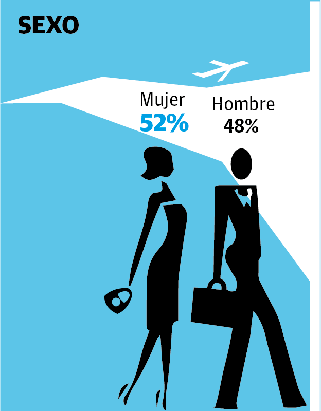 El 52% son pasajeras, en su mayoría de entre 30 y 49 años. Los viajes por ocio o por motivos familiares ganan peso frente a los de negocio