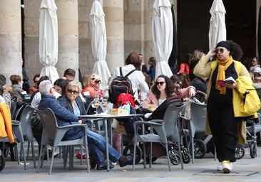 Para que esa afección sea lo más contenida posible la obra va a ir avanzando de manera progresiva. «Se va a abordar por alas para no dañar demasiado a la hostelería», detalla el concejal. «Los andamios se van a instalar fuera del soportal, donde están las terrazas, por lo que habrá que desplazarlas hacia el centro de la plaza, y en muchos casos van a perder dimensión». El tajo va a empezar en marzo, «en principio el día 3», en el lado «donde está el café Bilbao», es decir, en la parte Sur. Se prolongará durante «dos meses y medio» antes de pasar al siguiente flanco, avanzando en el sentido contrario a las agujas del reloj. «Y se terminará en el lado Este, donde está la sede de la asociación de comerciantes».