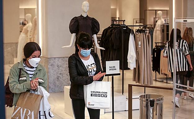 En la tienda de productos cosméticos Rituals, los clientes deben desinfectarse las manos antes de entrar. No se pueden tocar los productos, que el cliente debe introducir en una bolsa y después sacar para que la dependienta pase el lector y cobre. Hay flechas en el suelo para caminar en la dirección que indican alrededor de la tienda y hacia el mostrador. El pago es con tarjeta para evitar el virus que puede haber en el dinero en efectivo. «He venido a trabajar, pero llevaba mucho tiempo queriendo comprar unas cremas y he visto que estaba abierto y he aprovechado, aunque no está mi economía como para excesos», explicaba una clienta de Erandio tras adquirir dos productos.