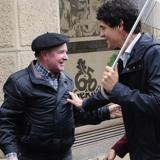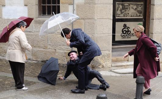 La lluvia que ha caído este viernes a lo largo y ancho de la geografía vizcaína y, en concreto, sobre Gernika jugó una mala pasada a un hombre que acabó en el suelo por culpa de un inoportuno resbalón. La escena se sucedió delante de Rementeria y de Atutxa que no dudaron en ayudar a esta persona que, con su sonrisa, quiso tranquilizar a los jeltzales que se preocuparon por su estado tras la caída. Eso sí, viendo la fotografía, está claro que el paraguas fue el que se llevó la peor parte.