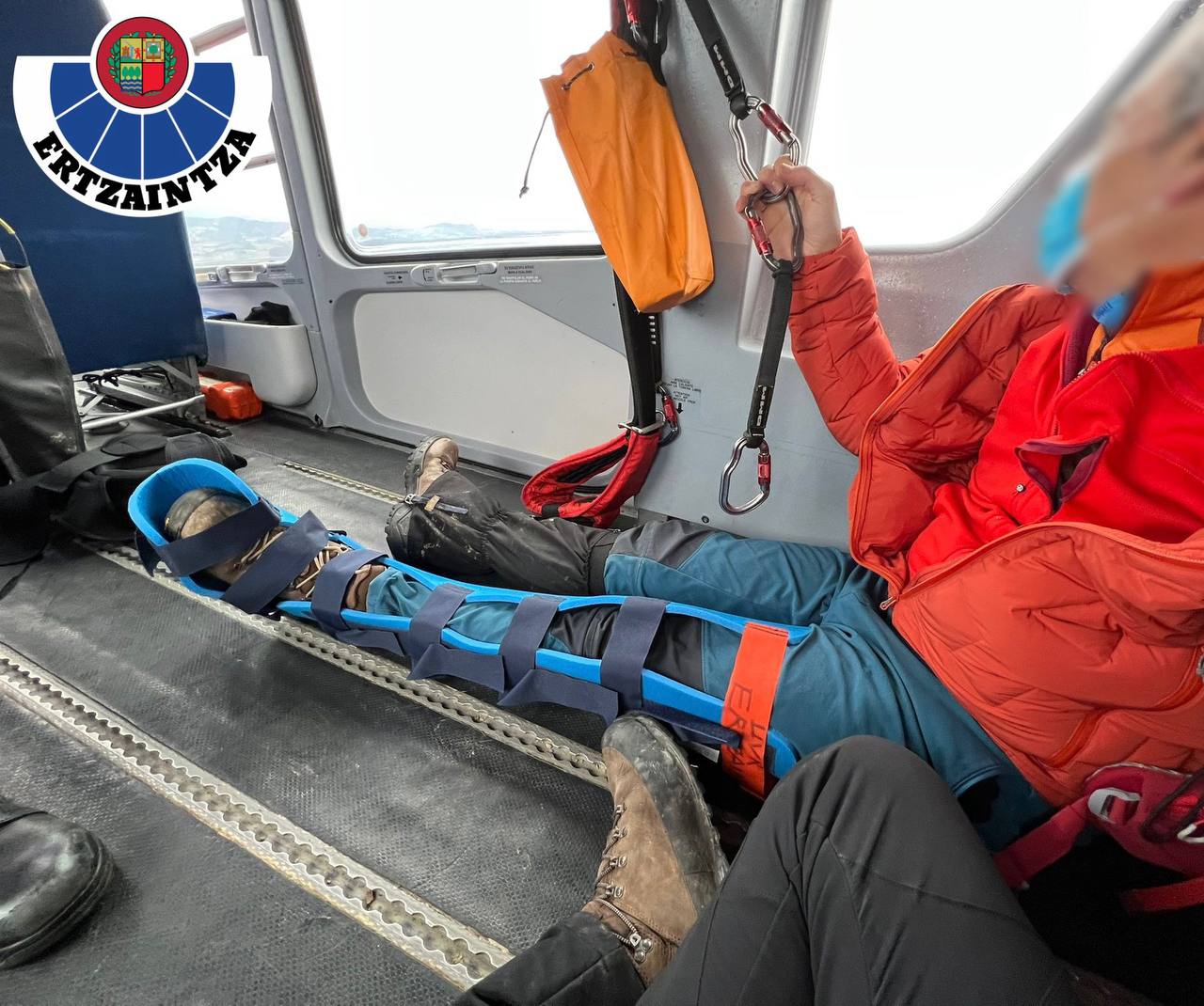 Finalmente, debido a que no era posible evacuarlo por tierra, ha sido el helicóptero de la Ertzaintza quien ha rescatado al montañero y lo ha trasladado hasta el hospital de Galdakao para ser tratado de sus lesiones.