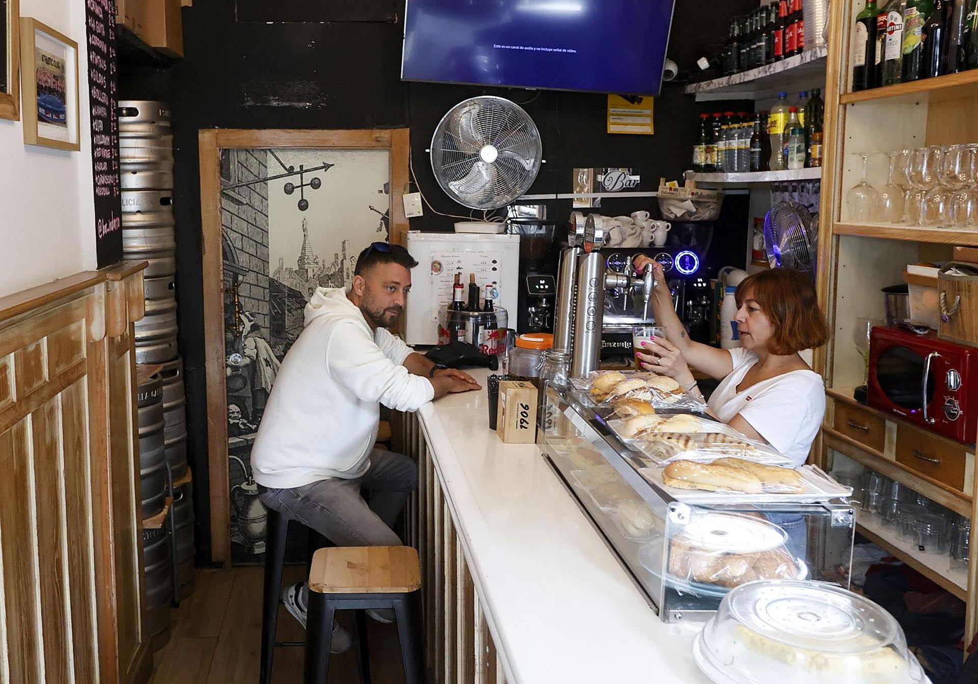 Insiste Mari Luz Valencia en que, con un local tan chiquitín como el suyo, el orden se vuelve una prioridad irrenunciable. Y, fiel a esa máxima, no tarda en 'ordenar' al propio reportero, en los dos sentidos de la palabra: «Tú ponte aquí», instruye, para dejar libre el pasillo, o sea, el bar. El aforo es de seis personas aunque, a ojo, cabría el doble sin violentar las leyes de la física: «Sin terraza esto sería inviable. En invierno las cosas se vuelven un poco más difíciles, pero lo llevas. Un bar tan pequeño tiene sus ventajas y sus desventajas. Es fácil de llevar, y de hecho yo lo cogí porque en aquel momento quería algo que pudiera manejar sola, pero tienes que comprar para la semana, porque de reserva nada, y por la noche es fundamental dejarlo todo en su sitio. Y no hay cocina, eso es lo que le falta: tengo pintxos pero me gustaría dar raciones». Mari Luz, que lleva aquí casi diez años, conoce y aprovecha cada milímetro de su espacio, con su neverita sobre la barra y algunas baldas que solo podría alcanzar un jugador de basket: «Tengo escalera y a primera hora bajo todo lo que voy a necesitar».