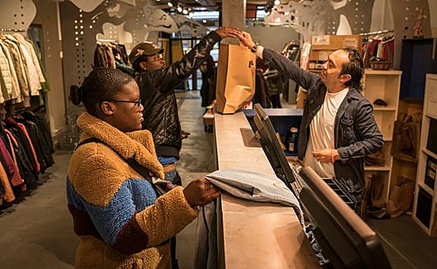 «La clave de nuestro éxito no sólo está en el precio –una persona puede salir de aquí vestida de arriba a abajo por 35 euros–, también en la rotación del género. Ninguna prenda pasa más de 40 días en la tienda», describe Fanny, que se enfrenta estos días al mayor desafío del año. «La ropa de abrigo deja más margen que unos niquis». Los jeans que nos han acompañado durante este viaje no tardan en encontrar destino. Eduardo se los vende a Eloísa por 3,99 euros. Misión cumplida.
