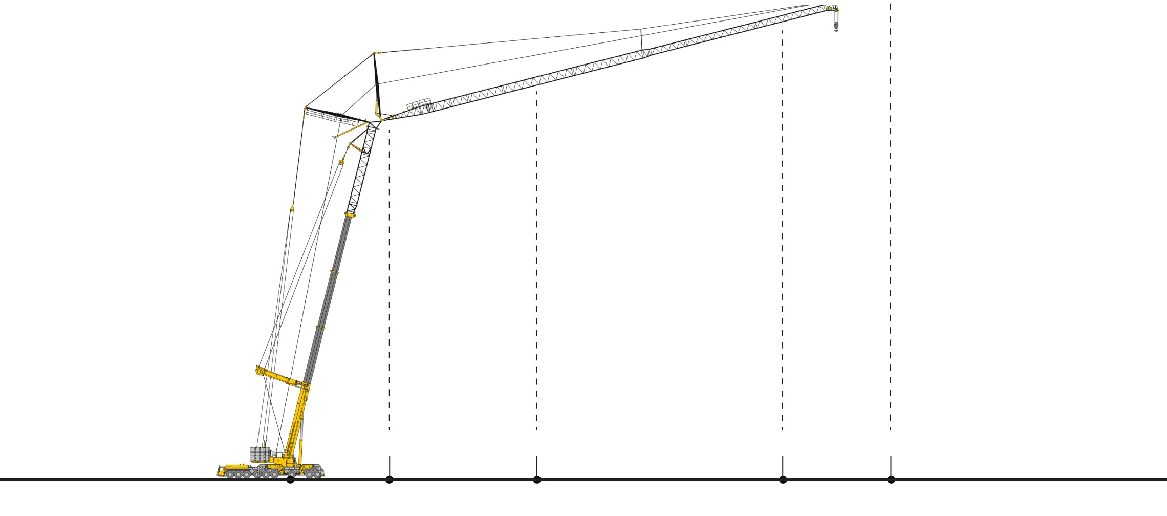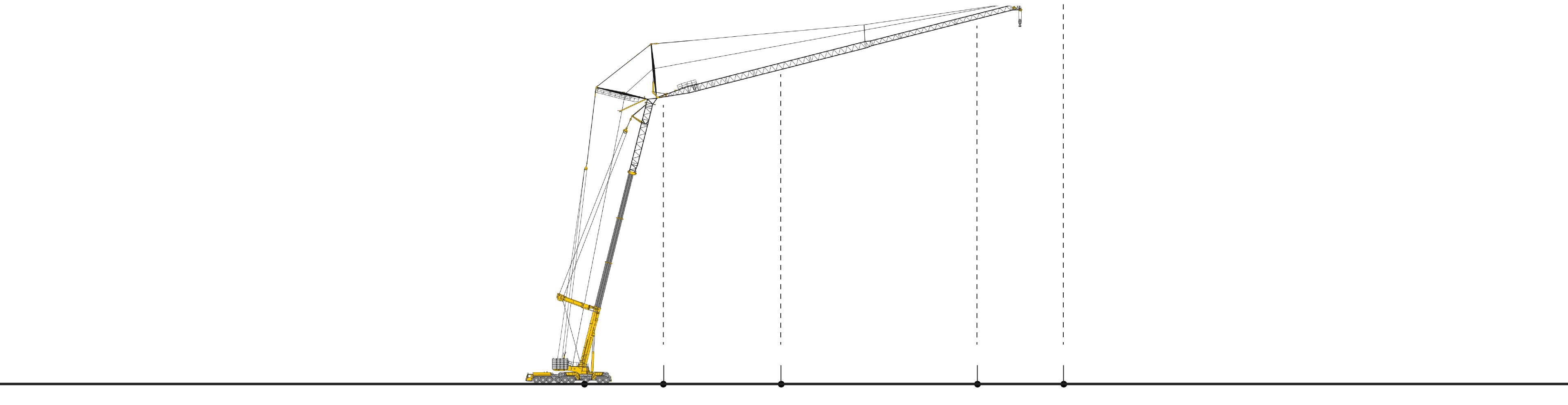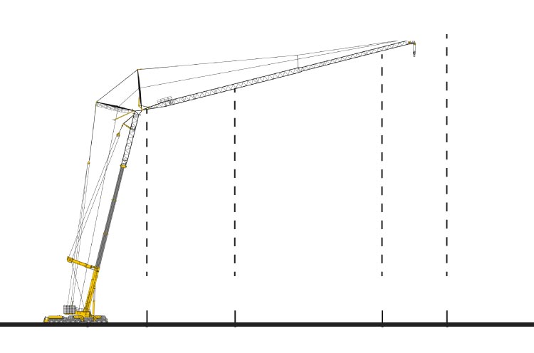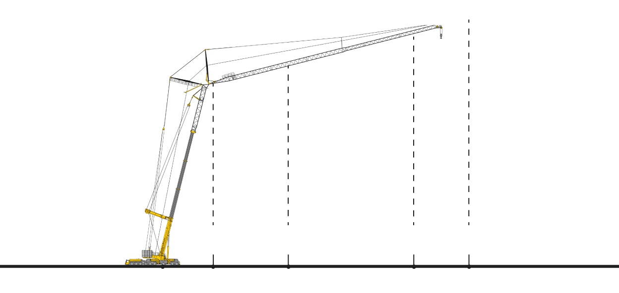 Los plumines -las estructuras que se acopla a la grúa para aumentar el alcance de esta- se transportan por separado y se montan en función de las necesidades. El mismo modelo de grúa se puede configurar de diferentes formas según las necesidades.