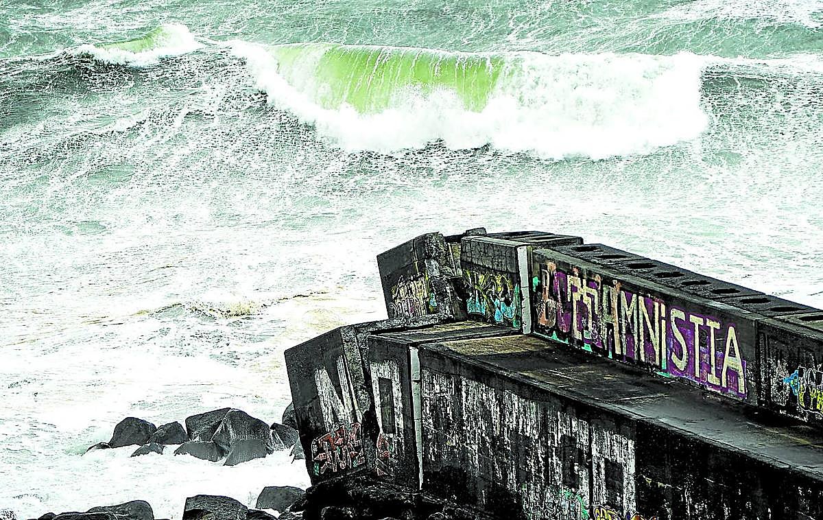Y es que la costa fue uno de los puntos más azotados por el temporal. Para la jornada de ayer estaban anunciadas olas de seis metros. Aunque la mayor de todas se registró en la madrugada de ayer en Pasaia, con una altura de 8,4 metros. El 'maretón' causó daños en el espigón de Punta Galea. En su extremo norte aparecieron grandes grietas entre los bloques de hormigón, fruto del impacto de las olas que desplazaron parte de la base sobre la que se apoya la estructura. El fuerte viento que azotó la costa cubrió también de arena el paseo y la carretera que discurren en paralelo a la playa de Ereaga. Donde no hubo incidencias fue en el aeropuerto, que operó con relativa normalidad, sin vuelos cancelados ni desviados, según informó Aena.
