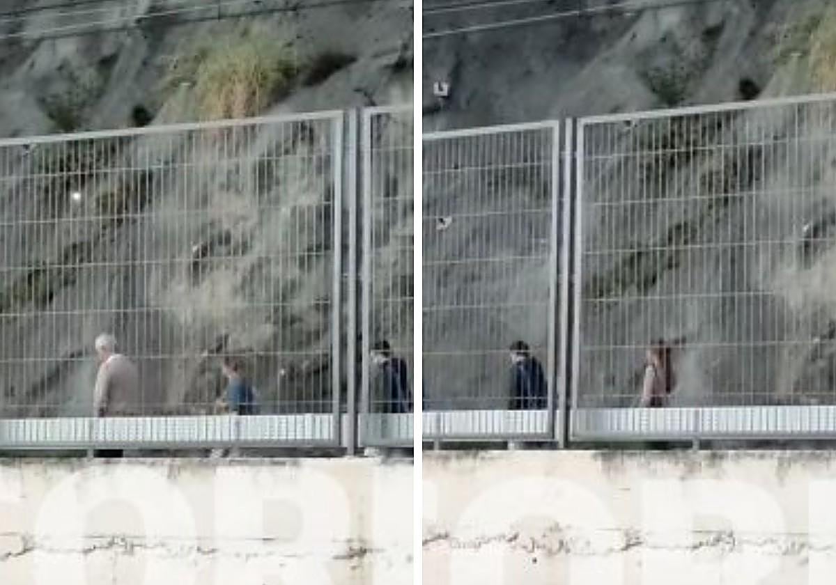 Viajeros caminando por las vías entre San Ignacio y Lutxana tras la avería del metro