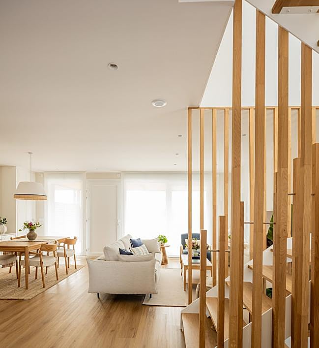 Ane Moratalla y Fernanda Lima, de Moralima Studio, transforman una vivienda adosada de tres plantas y 150 metros cuadrados en un refugio familiar lleno de luz y espíritu marinero