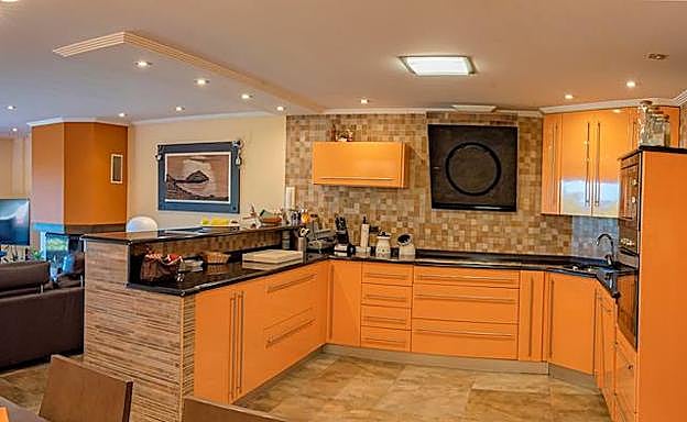 La cocina principal es interior y, como puedes comprobar, con una luminosidad natural perfecta. Sabes la importancia de poder cocinar con claridad y con un buen equipamiento. Aquí vas a disponer de todo lo necesario para preparar tus platos favoritos. Es espectacular el juego de reflejos del suelo cerámico y el alicatado de la pared.