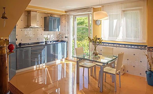 Junto a la cocina principal se ha ubicado una zona de tertulia. La amplia superficie de cada una de las plantas permite hacer una distribución de diferentes ambientes todos ellos de generoso tamaño. El suelo de tarima de madera contribuye a dar sensación de calidez y confort.