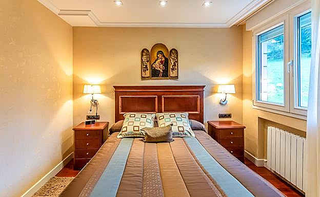 Este dormitorio cuenta con los elementos necesarios para ser una habitación de descanso en toda regla. El color de las paredes y la calidez de la madera del suelo, sin duda, harán que concilies el sueño de inmediato. En el techo se ha empotrado la iluminación led y luce, además, una delicada y bonita moldura.