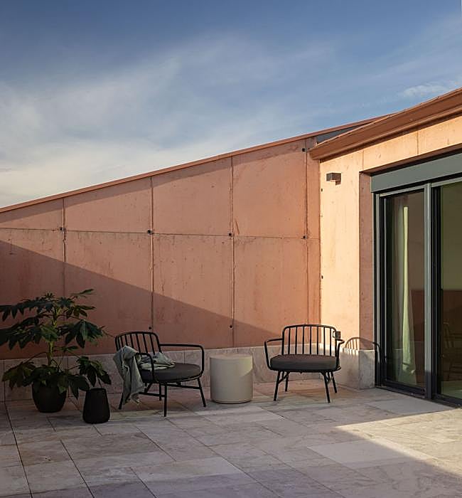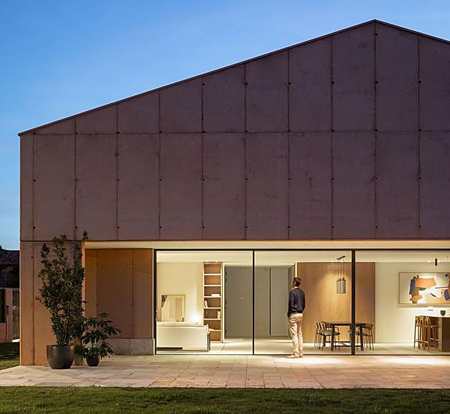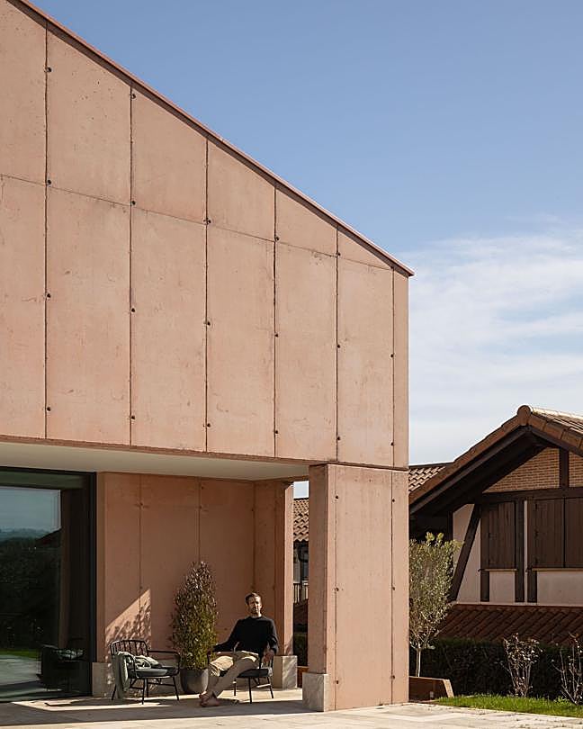 Cerca de los acantilados de Barrika, los arquitectos María José Orihuela y Jon Polo, de Polo Estudio, han reinterpretado el caserío vasco al concebir una casa en hormigón rosa que conjuga tradición y modernidad. El deseo del propietario era adquirir un caserío para rehabilitarlo como vivienda, pero cambió de idea al encontrar un solar vacío en este entorno privilegiado. «El reto era hacer una casa nueva manteniendo algunos valores constructivos del caserío vasco, pero sin repetir lo antiguo. Queríamos conseguirlo con un aspecto renovado, materiales actuales y respondiendo a las necesidades de hoy en día», explica Jon, segunda generación al frente de este estudio de arquitectura de Leioa que creó su padre hace 34 años.