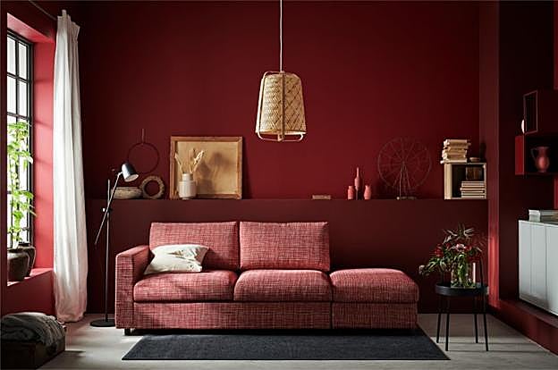 Como guiño y toque de temporada, me atrevo con las fundas de sofá VIMLE en jaspeado color rojo. Lo fantástico de esto es que se trata de una funda y que si en algún momento te cansa visualmente, puedes cambiarla sin gastar mucho dinero y actualizar tu sofá. Estamos acostumbrados a cambiar nuestra ropa cada temporada siguiendo las tendencias ¿por qué no la de nuestro hogar?