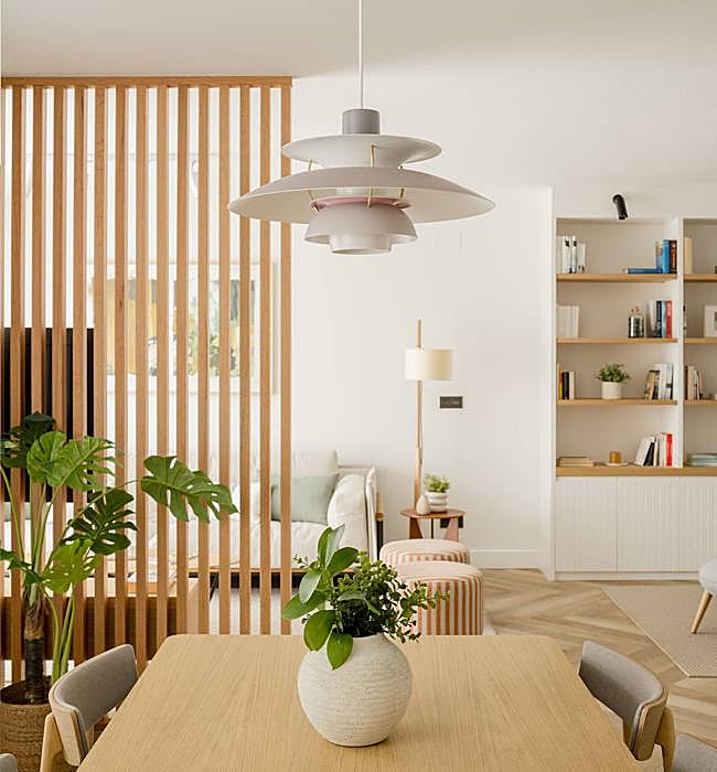 Ane y Fernanda han prestado atención hasta el más mínimo detalle. La cuidada selección de colores también se aprecia en elementos como la mesa auxiliar del salón, en tono verde azulado, o los jarrones decorativos de la entrada, en naranja. Además, la presencia de plantas en algunos puntos aporta frescura. Entre las firmas que han incorporado, destaca el sofá y la mesa de centro de Galea Home, las mesas y las sillas de comedor de Treku, los textiles de El Telar o las alfombras de Rols, entre otras. Con la reforma, las emprendedoras han conseguido convertir la vivienda en un espacio más luminoso, moderno y acogedor que mantiene la armonía en cada rincón. «Nos emociona ver el trabajo terminado con todo detalle. Es una satisfacción muy grande que confíen en nosotras para elegir cada pieza. La vivienda transmite mucha alegría e invita a desconectar», concluyen.