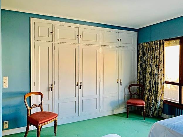 Este dormitorio disfruta de un gran armario empotrado. Esta manera de obtener espacio de almacenamiento siempre es más práctica y estética que los tradicionales muebles que llegan a deteriorarse antes y suponen un engorro a la hora de hacer limpieza.