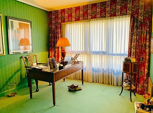 Esta habitación está habilitada como despacho. Gracias al gran ventanal no te faltará luz para trabajar aquí. El color verde del papel decorativo de la pared favorece la productividad y potencia la creatividad. Como ves, todo está pensado.