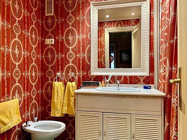 Cada cuarto de baño es una estancia totalmente diferente. Cuentan con su propia personalidad y esto es gracias a que unos han sido alicatados y a otros se les ha colocado papel decorativo, como en este sorprendente y grato caso. Es importante sentirse cómodo a la hora del aseo personal.