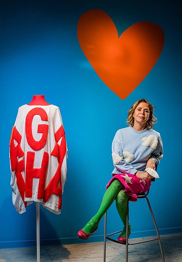 Si se le pide a un niño que dibuje una estrella, unas nubes o un corazón, el resultado será similar al que ofrezca si esa petición dicta que pinte un vestido de Agatha Ruiz de la Prada (Madrid, 1960). Ese colorido imaginario, infantil y universal, es la marca de la diseñadora madrileña que a los 20 años hizo su primer desfile. En marzo se cumple el cuarenta aniversario de ese debut y lo celebra con una exposición en el Centro de Exposiciones Fundación Vital de Vitoria, una ciudad que tenía ganas de visitar. «Sobre todo para ver toda esta fama tan grande en la ecología», resalta la creadora que repite expresiones como 'guay' y 'me chifla'. Viste así la amplia sala de calle Postas con sus vestidos de moda feliz. «La visita da un respiro en este momento gris», indica Fernando Martínez de Viñaspre, comisario de la exposición.