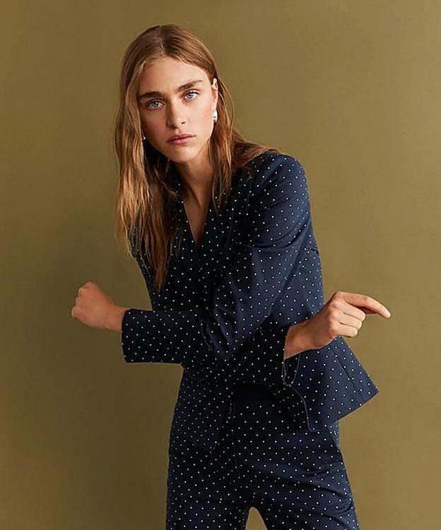 Si lo tuyo son los tonos oscuros, tan importante como el color negro es el azul marino. Y en Mango hemos encontrado esta americana con diseño de puntos blancos que le van a dar a tus outfits un toque muy elegante. De 35,99 euros ha pasado a 35,99 y está disponible entre las tallas 34 y 40.