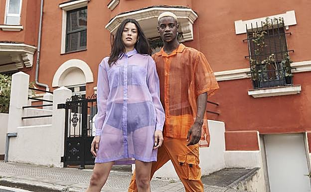 Para cumplir su propósito, adquirió por Internet cinco looks monocolor. «Elegí unas prendas modernas: camisas con transparencias, pantalones cargo, colores flúor y tonos metalizados», detalla. Para lograr esa «explosión de color» que tenía en mente, pensó también en dos enclaves opuestos de la villa: el edificio de cristal que alberga el Departamento de Sanidad del Gobierno Vasco - situado junto a la Alhóndiga y la Cámara de Comercio- y al barrio de Iralabarri. «Estas casitas de colores me recuerdan al famoso distrito londinense 'Notting Hill', me cautivaron cuando las descubrí», confiesa. Una vez allí, Leire buscó establecer sinergias entre las tonalidades de las prendas y las fachadas de los edificios. «La indumentaria de los modelos se camuflaba en las paredes y los colores de las cristaleras combinan a la perfección», apunta.