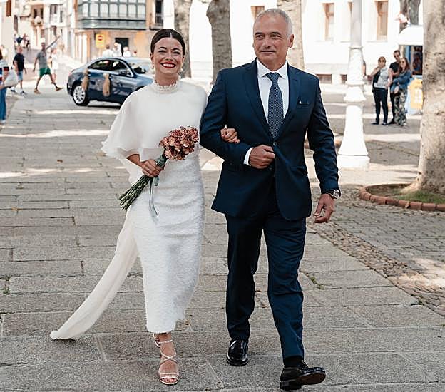 Esta lemoarra de 27 años contrajo matrimonio con Iñigo Robador, su novio desde hace más de cinco años, en la Iglesia de Santa María de esta localidad con un diseño del maestro Javier Barroeta