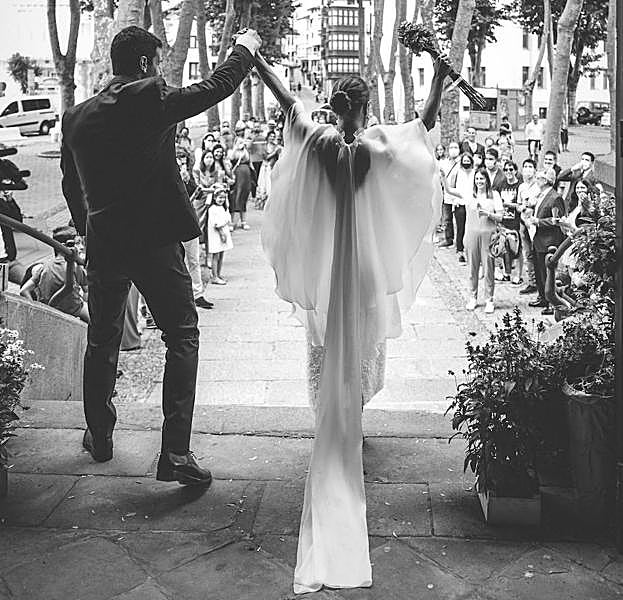 El convite tuvo lugar en el Baserri Maitea, un restaurante rodeado de naturaleza en el municipio vizcaíno de Forua. El aperitivo, que estuvo amenizado por un saxofonista, se alargó hasta media tarde: «Cuando nos dimos cuenta de que no habíamos comido eran más de las cinco de la tarde. Nos lo estábamos pasando tan bien...». En la jornada hubo hueco para sorprender a los invitados con unos regalos muy especiales: unos dibujos exclusivos de la mano de Idoia Jauregi, una buena amiga de la madre de Naia. Y así los protagonistas de esta historia de amor vivieron un día de ensueño acompañados por sus amigos y familiares más cercanos. «A pesar de que ha sido una boda con muy poquita gente por la situación que estamos viviendo, no nos arrepentimos de no haberla pospuesto. Que haya sido una celebración pequeña la ha hecho muy especial. Hemos podido disfrutar de cada uno de los invitados, dedicarles tiempo y pasarlo en grande», aseguran.