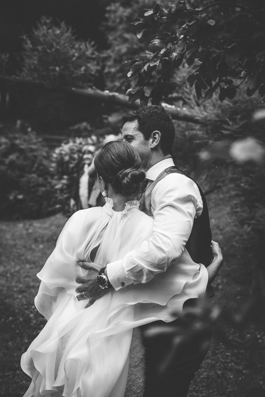 Su hermano y su padre fueron los encargados de llevarla a la Iglesia de Santa María. Fue uno de los momentos más especiales para ella: «Mi hermano puso música que yo escuchaba cuando tenía 16 años. Fue muy divertido, llegamos cantando como locos». La boda tuvo lugar a las 12.30 horas, y otro de los instantes favoritos de la novia sucedió al salir de la iglesia. Decenas de vecinos del municipio se acercaron para ver a los recién casados. «Hasta los niños dejaron de jugar para ver qué pasaba allí. Fue muy guay porque en Mundaka es una tradición», asegura.
