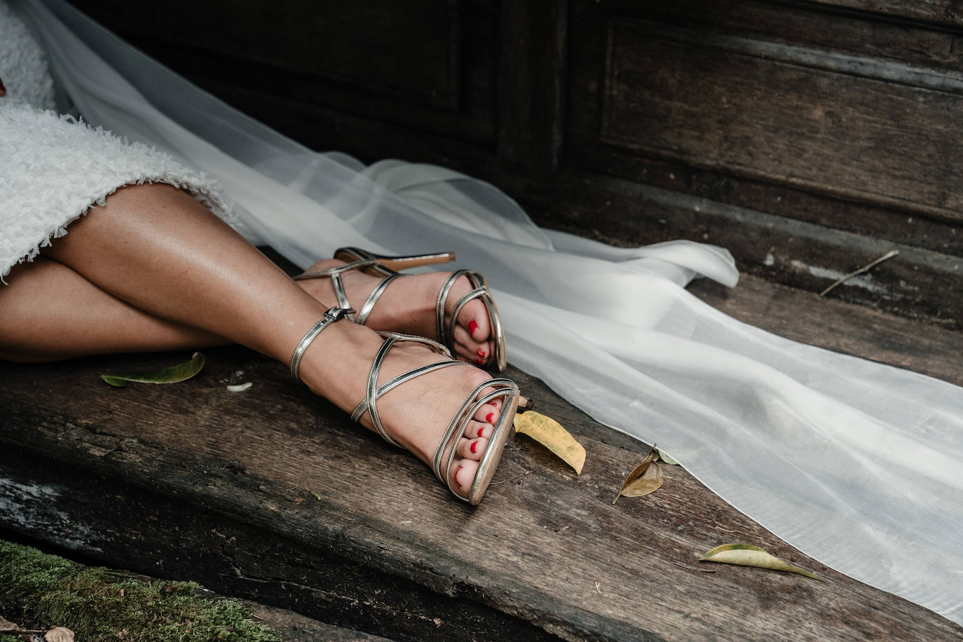 Completó su look nupcial con unos pendientes formados por pequeñas perlitas que adquirió por las redes sociales en la tienda online Rosalía Fashion. «Instagram hace maravillas. Me gusta mucho convertir algo asequible en elegante, me parece un puntazo», admite. Un accesorio que cambió por un modelo más grande de la firma Uterqüe para el convite. «En un principio, este último par de pendientes fue mi primera opción, pero cuando le añadí al vestido un cuello victoriano, me pareció que quedaba todo muy recargado. No lo devolví y decidí usarlo en la fiesta de la boda, cuando me quitara la capa», indica. Naia se calzó unas sandalias doradas que adquirió en la zapatería Casas, situada en la calle Rodríguez Arias, y se dirigió al altar con un ramo de flores del vivero de Murueta. «Es algo que tenía claro desde el primer momento: quería claveles multicolor en tonos vino y amarillo. Al ramo le añadí un colgante de mi abuela para que estuviera conmigo en un día tan especial».