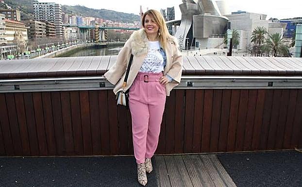 En este segundo look, he cambiado la capa de Zara por una 'blazer' también beige de Stradivarius. Y he añadido al estilismo un pañuelo rosa con cadenas, que me he puesto en una coleta baja, de esta misma tienda. Este complemento está muy de moda y como ya explicó mi compañera Innes Llach en Bizkaia Dmoda, el pañuelo ya no es solo para el cuello, sino que se puede integrar en distintos estilismos si usamos un poco la imaginación.
