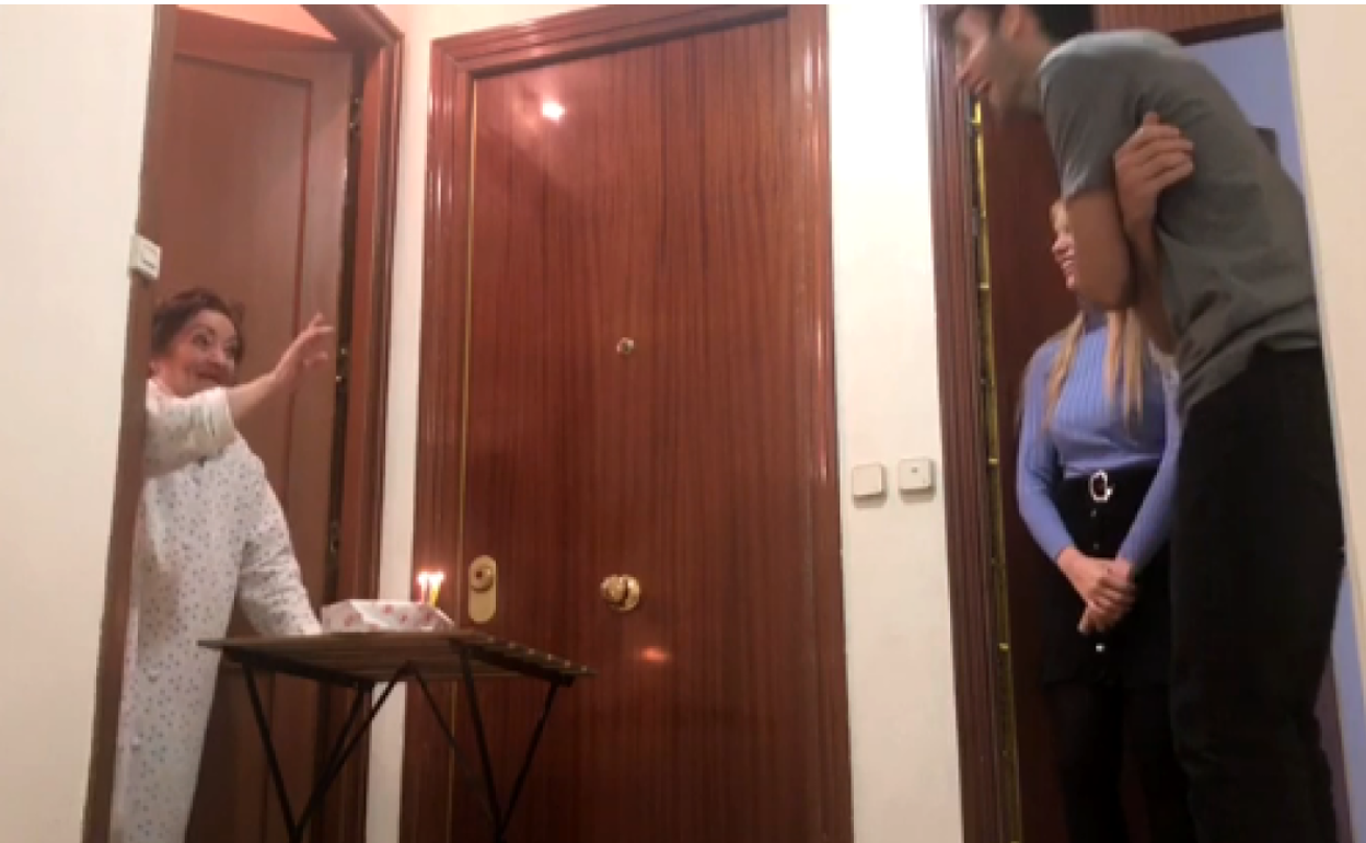 Un cumpleaños feliz para Pepita, de 88 años, gracias a sus vecinos Dani y Eva: «Te regalamos todos los abrazos del mundo»