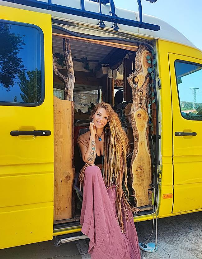 «Yo algún día viviré en una cabañita con ruedas», le repetía Diana Santos a su madre con siete años. Era una niña muy curiosa, ... sensible y creativa que sentía una conexión especial con la naturaleza y los animales. «Soñaba con recorrer el mundo en una autocaravana y ayudar a las personas», recuerda. Ese sueño empezó a tomar forma hace nueve años, cuando apareció en su vida la Caracola: un viejo minibús amarillo, usado para transportar a personas mayores, que iba a acabar en el desguace. Diana lo compró y lo fue transformando, pieza a pieza, hasta convertirlo en su hogar y en el de Lobito, su perro, que ha estado con ella desde que lo adoptó hace siete años. «Un día decidí dejar de lado las estructuras impuestas, la rutina en la ciudad, el consumo innecesario... y vivir de una forma más coherente con lo que sentía que era mi esencia», afirma esta vizcaína de 38 años, que encontró en la carretera, la naturaleza y la libertad su manera de estar en el mundo.