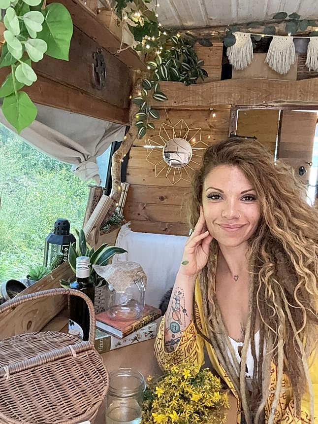 Diana no sabía ni por dónde empezar. «Era un trozo de hierro», recuerda. Pero su sueño de convertirlo en un hogar la llevó a buscar tutoriales en foros y YouTube. Poco a poco, fue transformando ese minibús en la cabañita con ruedas que siempre había imaginado. «La revestí de madera porque me conecta con la naturaleza. Puedo pasar horas creando muebles con restos de madera. Y me encanta recoger palos y adornar con ellos, porque donde otros no ven nada, yo veo tesoros», asegura.